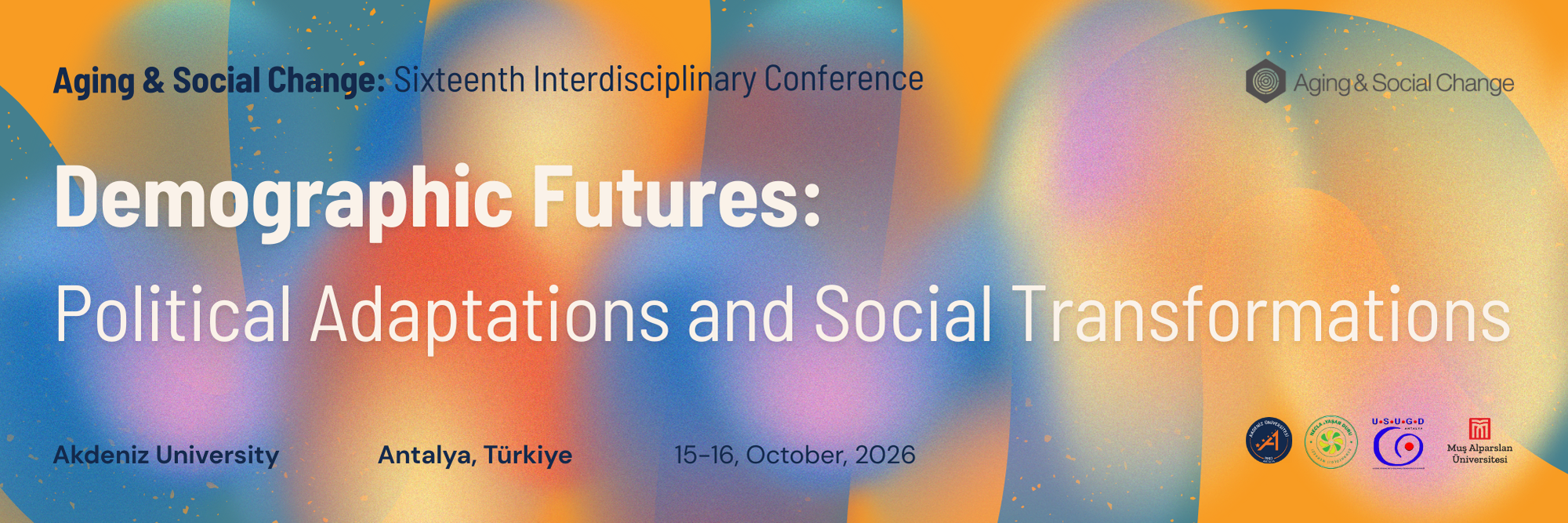 We warmly invite you to submit a proposal and to join us—either in Antalya or online—for the Sixteenth Interdisciplinary Conference on Aging & Social Change, the annual meeting of The Aging & Social Change Research Network. Together, we will explore how demographic transitions are reshaping political, social, economic, and cultural life, and how societies might reimagine intergenerational futures.