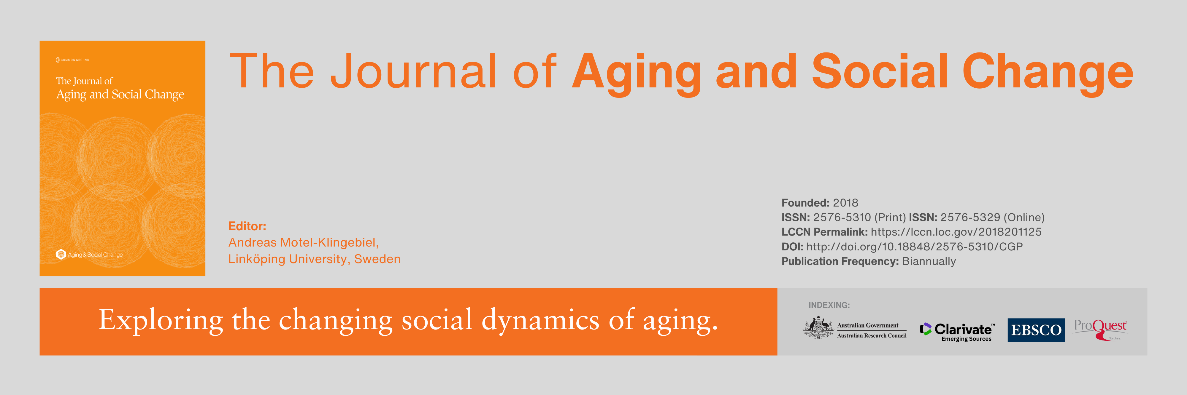 The Journal of Aging and Social Change is a forum for discussion of challenges and opportunities for a rapidly growing segment of the population worldwide. The process of aging is a concern for individuals, families, communities, and nations. The social context of aging provides a rich background for community dialogue on this, one of the critical questions of our time. We seek to build an epistemic community to make linkages across disciplinary, geographic, and cultural boundaries. The journal is defined by our Research Network scope and concerns and motivated to build strategies for action framed by our shared themes and tensions.