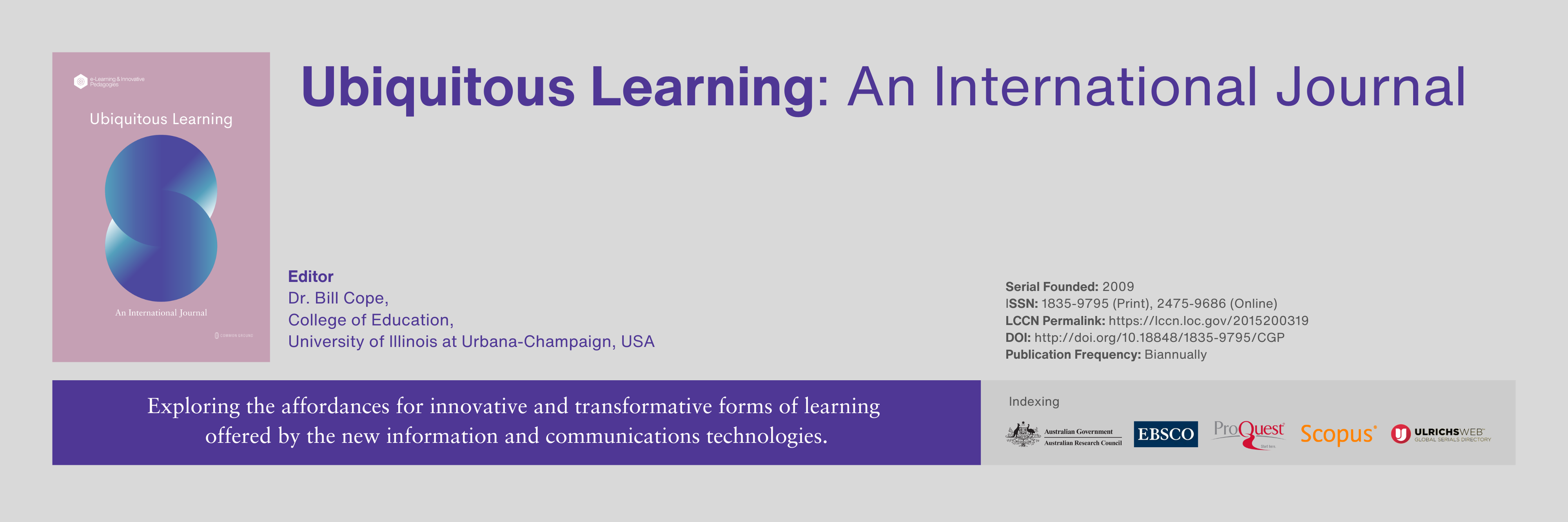 Ubiquitous Learning: An International Journal is brought together around a common concern for new technologies in learning and an interest to explore possibilities for innovative pedagogies. We seek to build an epistemic community to make linkages across disciplinary, geographic, and cultural boundaries. The journal is defined by our Research Network scope and concerns and motivated to build strategies for action framed by our shared themes and tensions.