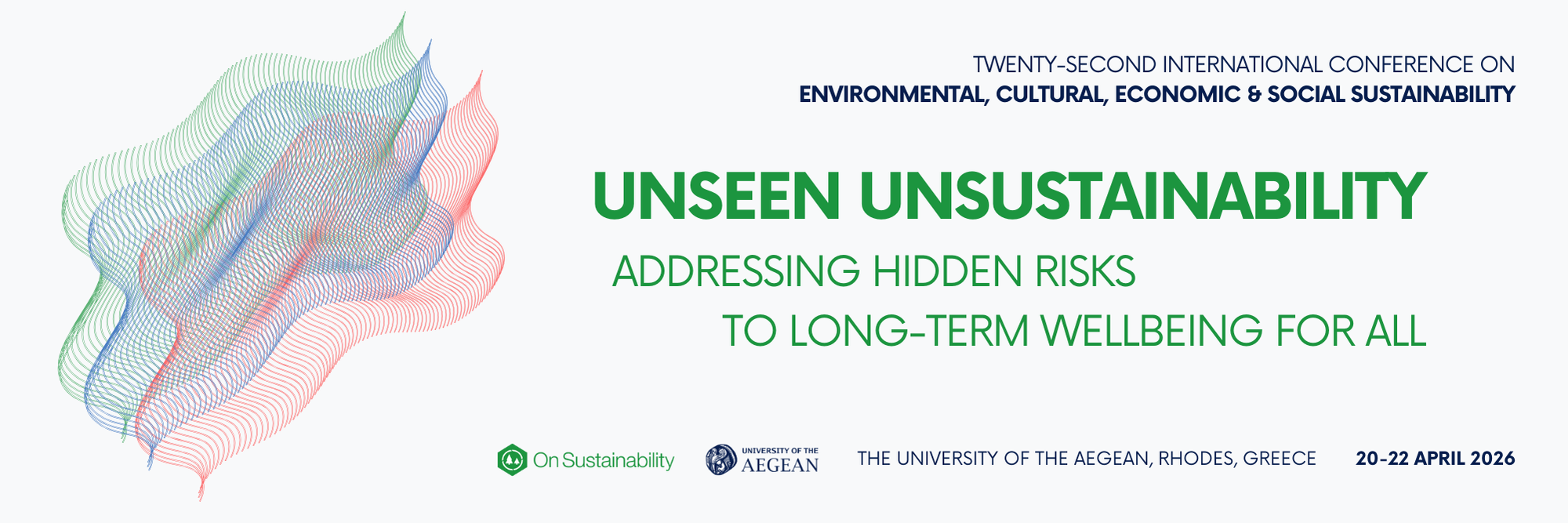We invite you to join us for the Twenty-Second International Conference on Environmental, Cultural, Economic & Social Sustainability, the annual meeting of the On Sustainability Research Network, taking place 20–22 April 2026 in Rhodes, Greece and online, in partnership with our host institution, the University of the Aegean. This year, the conference is convened jointly with the Climate Change: Impacts & Responses Research Network, bringing together two communities committed to understanding unsustainability as a multidimensional condition involving ecological, cultural, economic, infrastructural, and social systems.