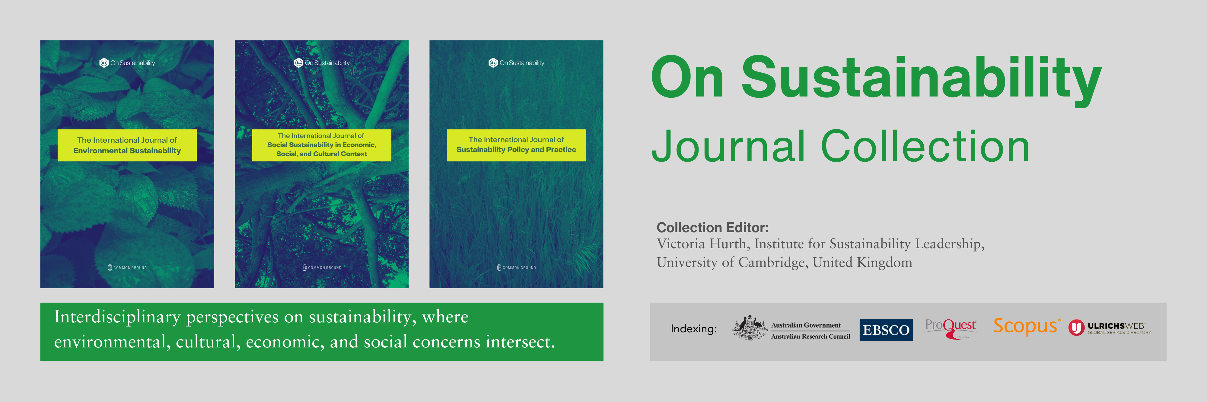 We are committed to expanding the visibility, reach, and impact of research from the On Sustainability Research Network. Journals in the On Sustainability Journal Collection can be found in numerous databases, accessible via the libraries of institutional subscribers, and in the CGScholar Bookstore for current Research Network Members.